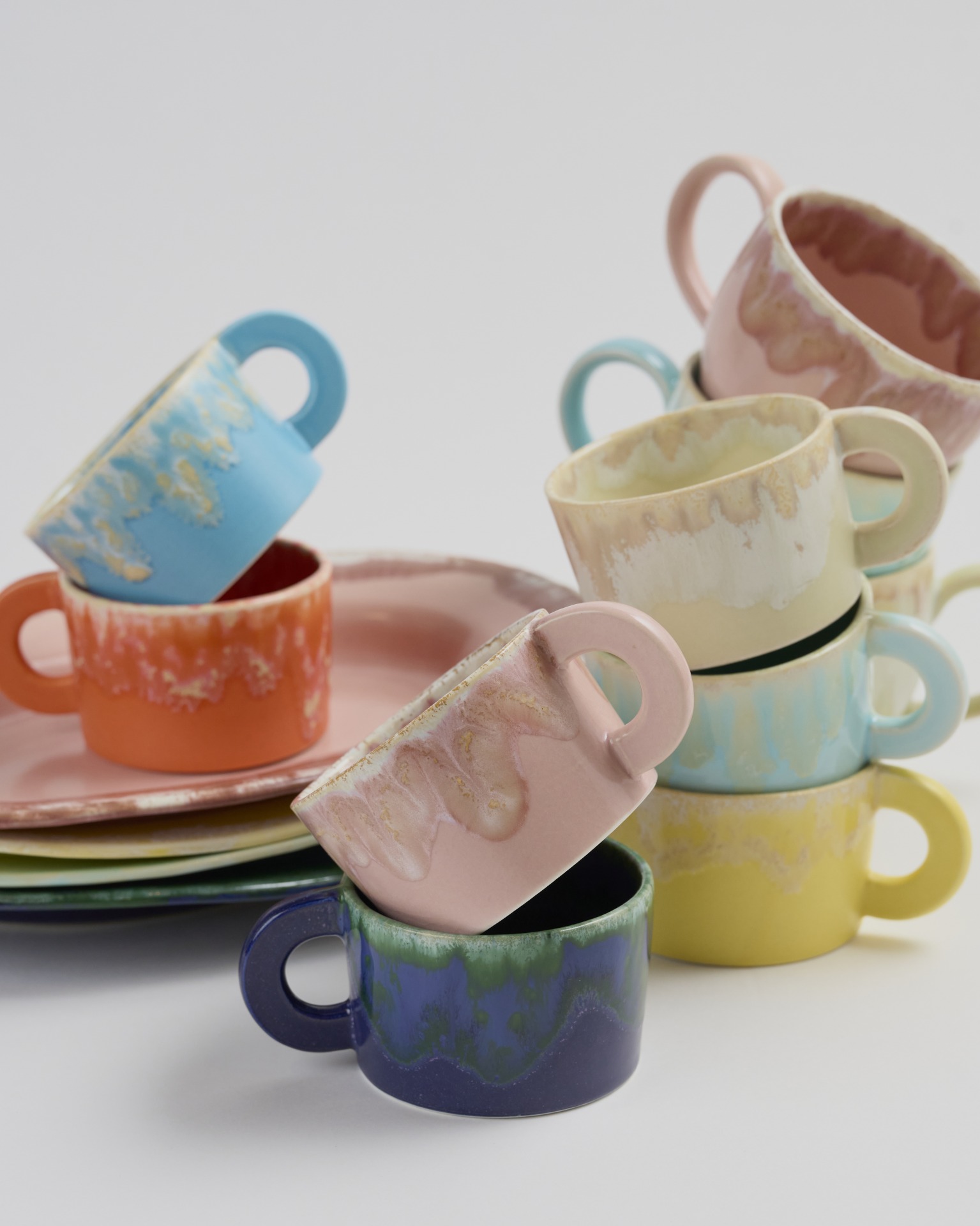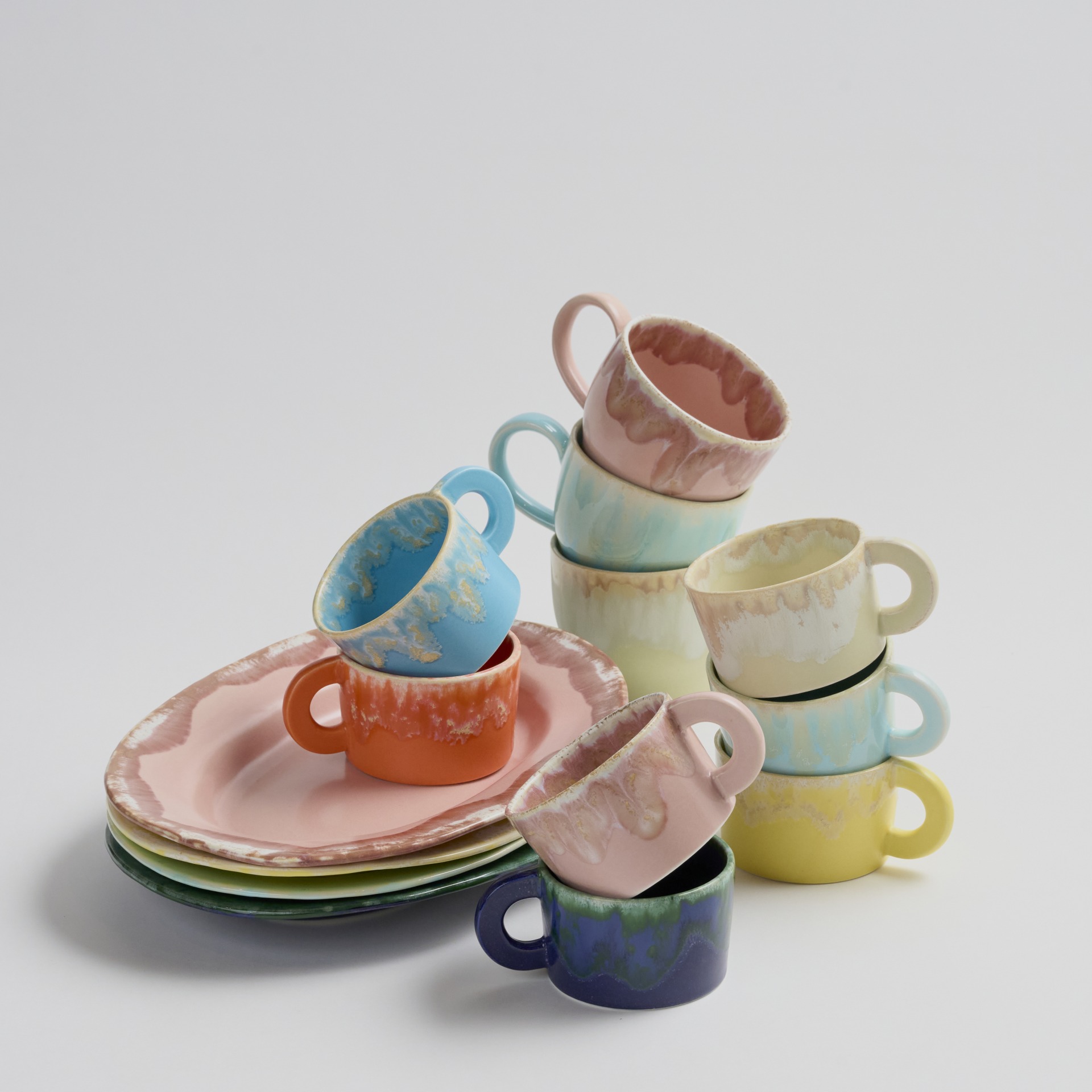 三重県鈴鹿市の周りは田んぼしかない田舎で育ち、先祖代々からの広大な土地の米作りをしながら育つ。そんな本気の田舎で大好きだったのがファッション雑誌。毎号出ては色んな雑誌を読みふける日々を過ごし、パリコレモデルに憧れたが身長158cmということで断念。 芸術大学を目指して3浪する。最終的に愛知県立芸術大学の陶磁専攻に入学。学部、大学院と6年間学ぶ。そこで陶芸の釉薬の面白さや、プロダクト製品で使う石膏型にのめり込む。 釉薬は様々な原料や調合の違いで全く違う表情をみせてくれる。全ては窯の中で起こることという、窯の中で作られる表情というのが好きになる。釉薬実験マニアである。 石膏は水を加えれば液状から個体に変化する。そして固まる中で熱を放出する。真っ白で冷たくて熱い、フラットでもあり情熱的な石膏の存在が愛しい。色が大好きな私が石膏と触れることで0の自分にリセット出来るような感覚がある。 釉薬Loverで石膏Loverな 畑直子が生み出す陶磁器ウェア、それがNAOKO HATA CERAMICSです。