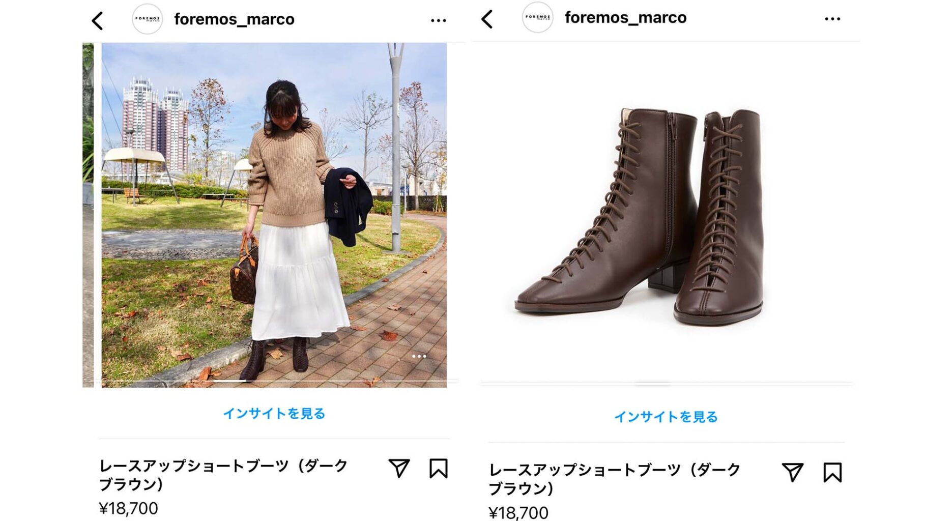 インスタグラムには『インスタグラムショップ』という機能がある。インスタグラムとフェスブック内にショップを開設し購買できる仕組みである。日本では決済まではまだできないが、インスタグラム内で購買している体験が実現されている。投稿を見て購買、インスタライブをみて購買、再販告知をみて購買、、、といったような設計がされている。また顧客が履いている自社商品をインスタグラム内にタグ付することもでき、UGCを活用した商品販売もできる。