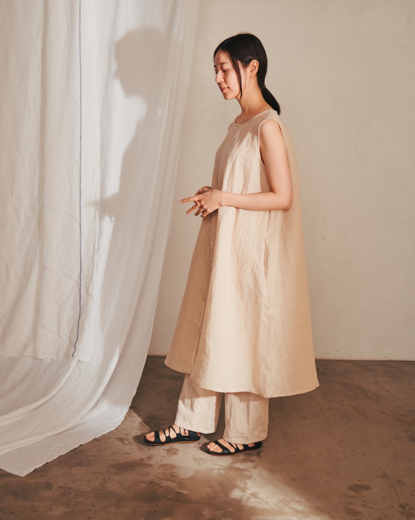 時代のムードを取り入れ、あの頃見た映画のワンシーンのように、今を楽しめるファッションスタイル。 クチュールの端正なテクニックにより、包み込まれるような着心地と優雅なシルエット。 洗練された佇まいとタイムレスなルックスを支えるのは、厳選された国内外の上質な素材を用い、アトリエでの一貫した品質管理によるもの。 ベーシックアイテムにトレンドを絶妙に取り入れ、フェミニンなワードローブを満たすブランド